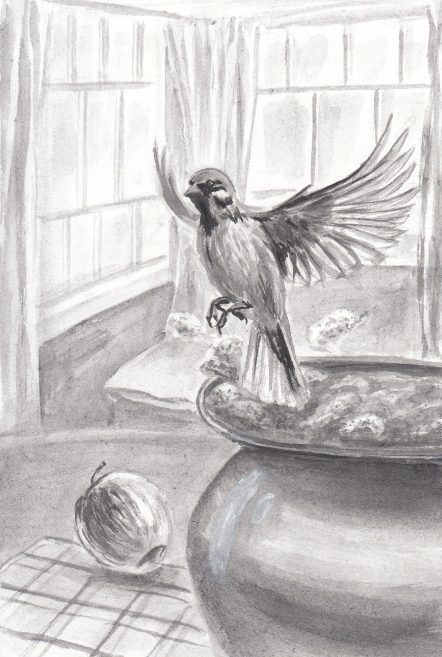 Громко чирикая, он заметался по комнате, а потом влетел в печь и понёсся вверх по трубе.