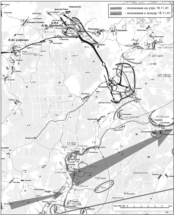О том, что могло произойти дальше, мы не узнаем никогда, и можем только констатировать, что контрудар 16‐й армии закончился, и надо рассмотреть события, которые вызвали решение о его прекращении. Для этого вернемся на несколько дней назад.
