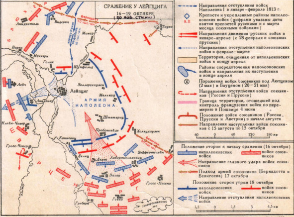 Александр Михайловский – Данилевский подробно описал это грандиозное сражение: «Открыли сражение русские (4 октября) на правом крыле Богемской армии. Они взяли Вахау и Клеберг, двинулись за отступающим неприятелем и попали под губительный огонь французских батарей. В одно мгновение были подбиты почти все орудия первой линии корпуса принца Евгения Вюртембергского. Теперь уже французы пошли в атаку и выбили русских из Вахау и Клеберга. Сражение развернулось по всей линии центра правого крыла Богемской армии.
