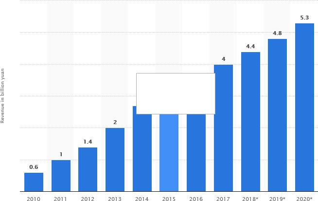 Источник: Statista: https://www.statista.com/statistics/385811/china-market-volume-of-online-dating-market/.