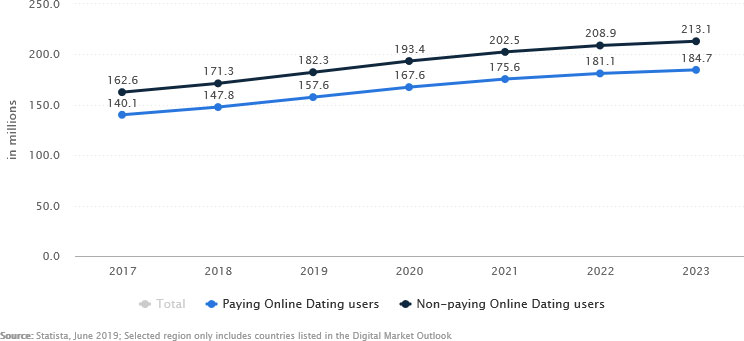 Источник: Statista. 2019. https://www.statista.com/outlook/372/100/online-dating/worldwide.