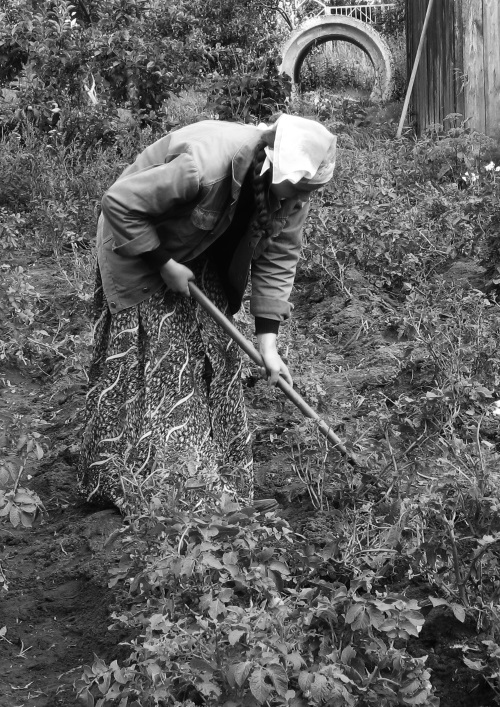 Старшую бабку на огород последние лет пять провожала младшая. Нет, у бабки Фроси силушка в руках ещё пребывала и в ногах немного прыти оставалось. Вот только чтобы передвигаться, эти «прыткие» ноги надобно переставлять, а как раз на это сил не осталось вовсе. С рассветом бабка Маруся выносила мать на закорках. Вынесет, установит в начале огородной полосы, перегнёт её пополам и вручит на потребу инструмент. Полоть – значит, тяпку. Копать – значит, сапёрную лопатку. Так до заката бабка и движется по грядкам носом вниз, где лопаткой, а где и пальцами перетирает земной прах. Вечером – всё в обратном порядке: дочь мамку разгибает и транспортирует в хату.