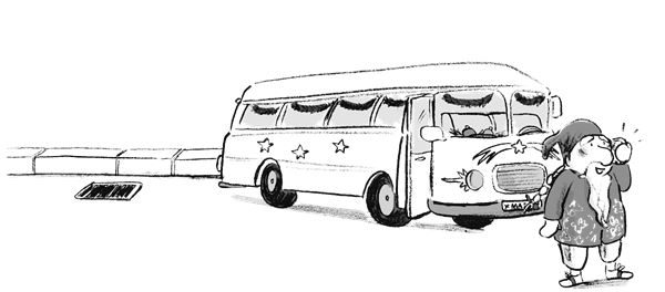 Эмми и свинка-единорог поспешно шмыгнули за торговую лавку и стали наблюдать. Водительская дверь открылась, и из автобуса вышел гном. Настоящий рождественский гном! Эмми тотчас его узнала по пальто с вышивкой и белой густой бороде.