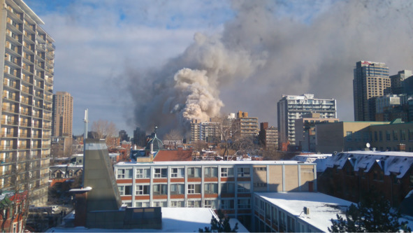 История пожаров в городе началась в 1651 году, спустя девять лет после основания на острове поселения Виль-Мари, впоследствии выросшего в большой город. С тех пор эта беда регулярно посещала город, оставляя за собой пепелища на месте десятков и даже сотен домов. Летом 1852 года в Монреале разразился самый разрушительный пожар за всю его историю. А день спустя еще один пожар охватил предместья города Сен-Лоран (сейчас Сен-Лоран наряду с другими муниципалитетами входит в состав Большого Монреаля). В те дни без крова остались около 15 тысяч человек (замечу, что население города тогда составляло всего 57 тысяч человек). Жертв среди горожан не было, однако погибли несколько пожарных. Когда же пожар, наконец, погасили, над городом разразилась страшная гроза, вымочив до нитки усталых, голодных, лишившихся жилья людей.