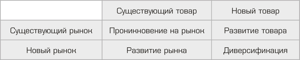 Матрица Ансоффа – аналитический инструмент стратегического менеджмента, предназначенный для определения стратегии позиционирования товара на рынке