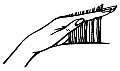 Внешний срез. Прядь срезают с наружной стороны пальцев, пальцы при этом нужно повернуть от себя. Срез используют, чтобы получить при стрижке летящий силуэт, когда верхние волосы должны быть короче нижних.