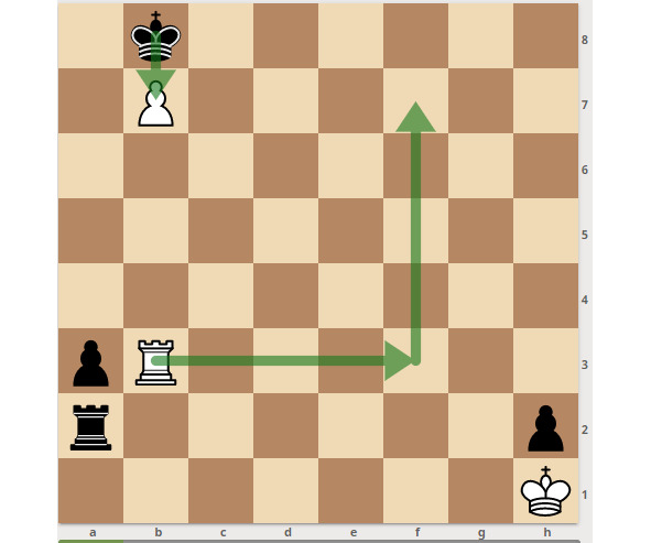 У черных лишний материал, достаточный для победы. Но уклониться от назойливой ладьи, преследующей белого короля, они не могут. А взятие ладьи королем приводит к пату.