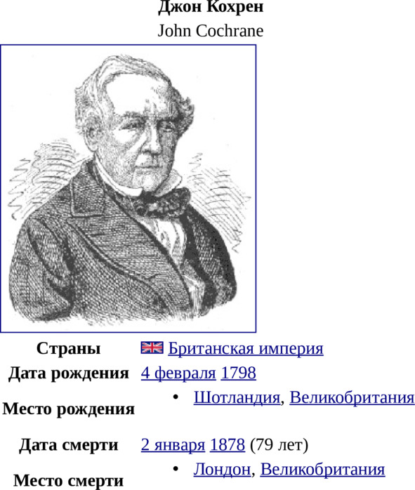 ДЖОН КОХРЕН (1798—1878) шотландский шахматист, которого признавали одним из сильнейших в мире в 1840-х годах. По основной профессии Джон был адвокатом. Много лет прожил в Индии, где успешно вёл свою юридическую практику. В Калькутте Кохрен обучил нескольких индусов шахматам и получил себе достойных соперников: Гулама Кассима и Махеш Чандру Банерджи. В играх с ними он оттачивал свои шахматные навыки и разработал гамбитный вариант в русской партии, который получил название гамбит Кохрена.