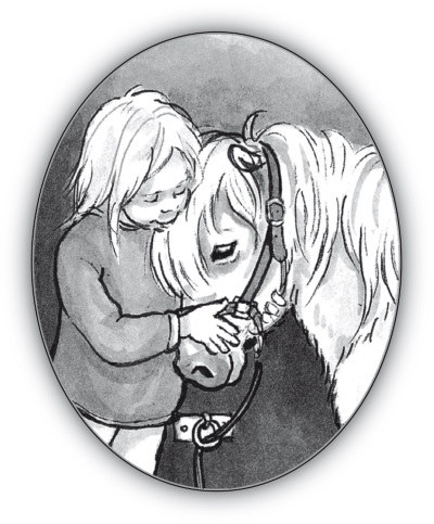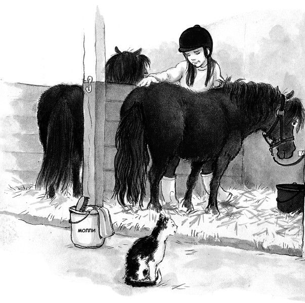 Ханне и Агнес достаются Молли и Разиня – их любимые пони, так что они выглядят довольными. И только Элина стоит со слезами на глазах, когда Ингела заканчивает распределение и велит всем пойти взять вёдра с гребнями и щётками и приступить к чистке лошадей.