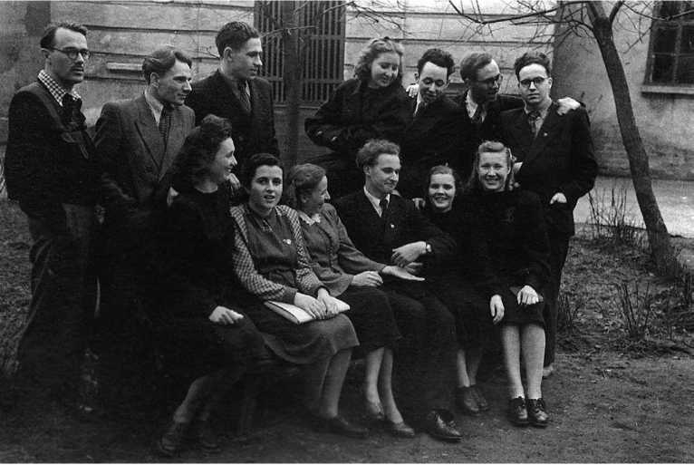 Литовские студенты МГУ Ирена вторая слева в первом ряду, Александрас Штромас первый справа во втором. Москва, 1951