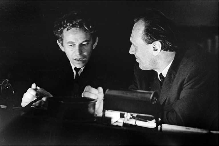 Казис Сая и Григорий Кроманов на репетиции спектакля «Святое озеро». Таллин, 1971