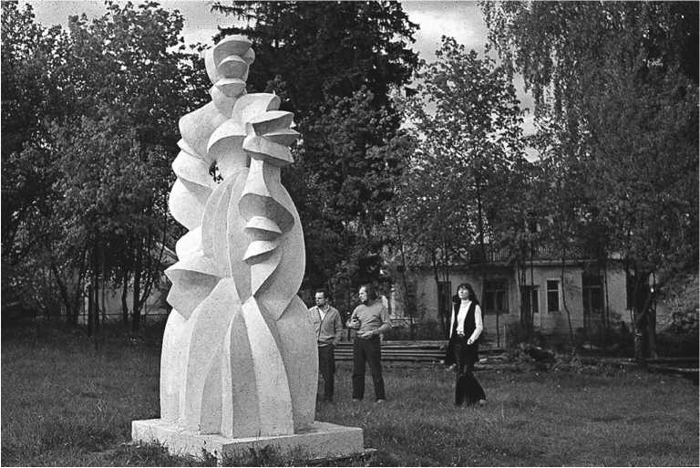 Макет скульптуры Барборы Радвилайте во дворе у Владаса и Марите Вильджюнасов.