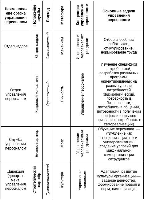 Для общего понимания взаимозависимости функционала деятельности службы управления персоналом от положения в структуре организации предлагаю воспользоваться таблицей: