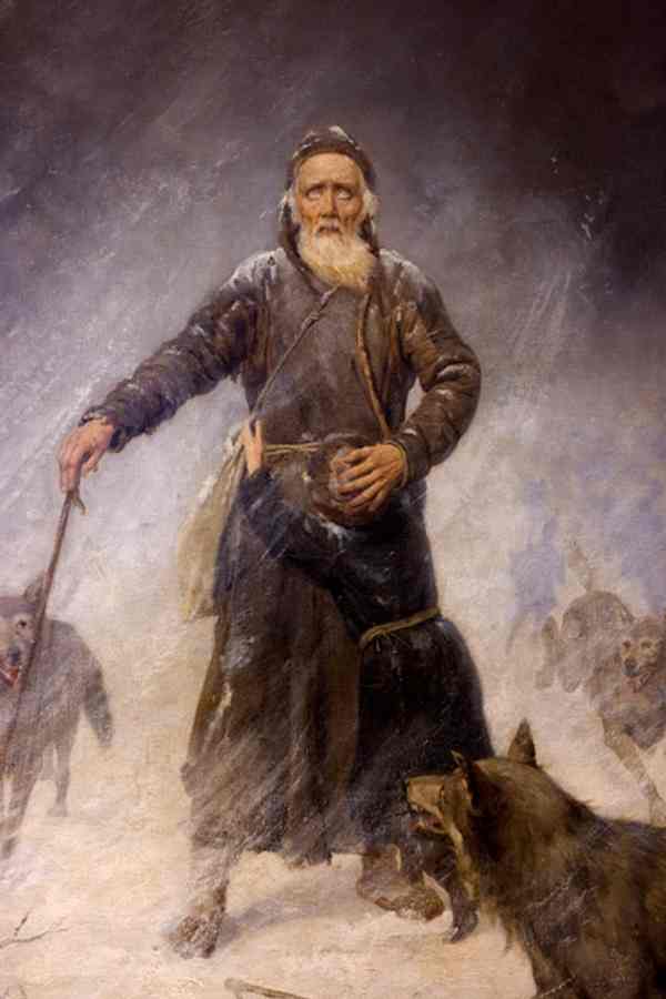 – А, ну вот, эту картину я назвала бы шедевром, а именно настоящим искусством. Взгляни, как потрудился художник: он не только безупречно изобразил пейзаж, фигуры людей и выступающие мышцы волков, но и передал то движение и эмоции, которые чувствуют персонажи. Испуг и страх за маленького мальчика в глазах деда, его рука крепко прижимает крохотную головку к себе. А паренек жмется и сам ближе, веря, что дедушка его спасет. Волчьи звериные глаза всматриваются в темноту, дожидаясь какой-то команды, чтобы растерзать жертву. Белый снег мечется, подгоняемый ветром, подчеркивая неокончательность изображенной ситуации.