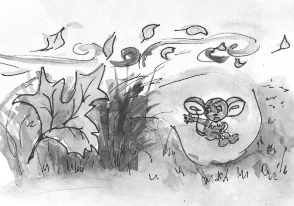 Мышонок сидел в норке и дрожал. Рядом он услышал шорох. «Это, наверное, кошка», – подумал мышонок и задрожал сильнее. На самом деле у норки лежал сухой жёлтый лист, и свежий ветерок тихо шуршал им.