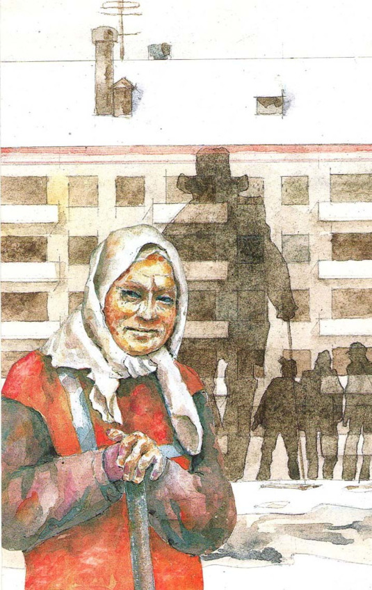 Навстречу катится двухколесная деревянная тележка с высокими бортами, доверху нагруженная почерневшей и мокрой прошлогодней травой, в нее упирается низкорослая крепенькая женщина в кепке с длинным козырьком и оранжевой спецовке, по возрасту – давно перевалившая пенсионный рубеж. Глядя на ее, потемневшее и огрубевшее от времени, лицо, можно предположить, что вся ее жизнь прошла на фоне соседствующих серо-тусклых пятиэтажек. Она легко вписывается в окружающий городской пейзаж без рекламных огней и броских вывесок, может поведать историю двора, рассказать о всяком и все. Неуклонно приближается.