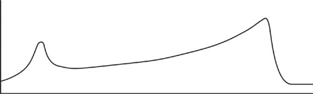Один из классических способов – смена ритма. Писатели годами использовали и изучали этот метод, вплоть до того момента, когда была разработана специальная формула ритма, которую используют снова и снова. Классическая кривая темпа начинается с крутого изгиба, переходит в подъем, растет, затем наконец достигает пика, а затем ниспадает. На графике это выглядит так: