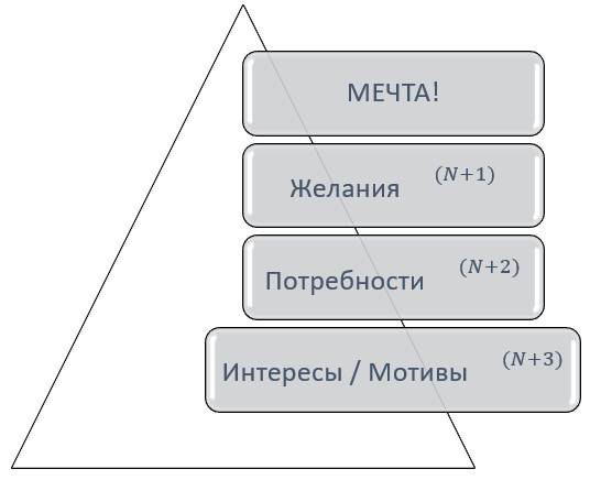 Счастьем человека движет мечта! Сначала мы мечтаем о том, как мы хотели бы жить и кем мы хотели бы стать. И если мы понимаем, что мечта может стать реальностью, то она распадается на более низкие уровни – движущие силы, которые нас подталкивают к достижению нашей мечты! И мы счастливы!