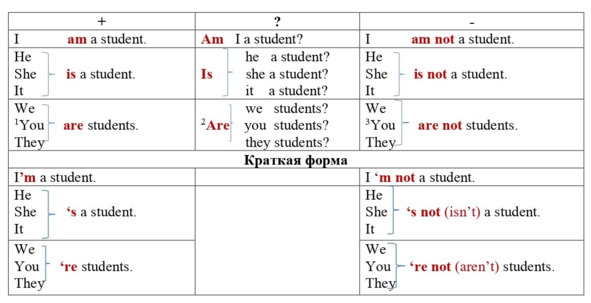 [1] Для варианта с You, где You употребляется для обозначения 2-го л. ед. ч. (ты), мы скажем You are a student.