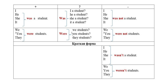 [2] Для варианта с You, где You употребляется для обозначения 2-го л. ед. ч. (ты), мы зададим вопрос Were you a student?