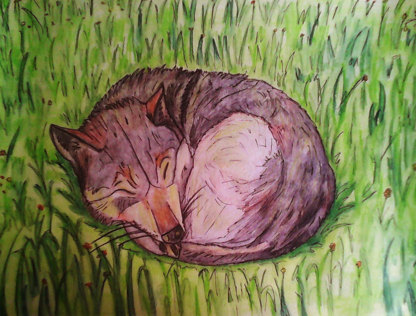 Неожиданно, неподалёку от себя, дети увидели спящего щенка, который, согнувшись в кральку, сладко спал. Они решили подойти поближе, но от шелеста листьев и травы под их ногами, он проснулся. Дети вздрогнули от резкого прыжка животного, которое смотрела на них по-детски наивными глазами.