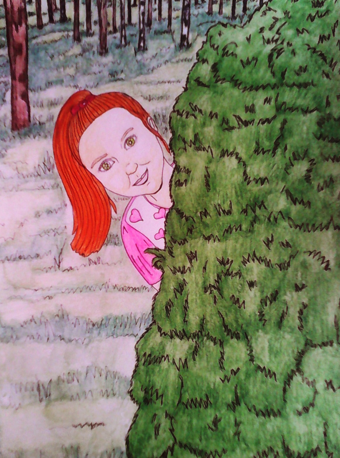 Костя, шагая и увлекательно что-то рассказывая, резко обернулся и увидел выглядывающую из-за куста Аню.