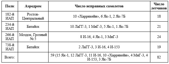 Обеспечивать противовоздушную оборону Ростова-на-Дону, а также участка железной дороги от Тихорецка до Шахт должна была 105-я ИАД ПВО. Для дивизии данная задача уже была привычной, она занималась ей с января по июль 1942 г. После занятия Ростова немцами соединение перебазировалось в Грозный и оставалось там в течение 7 месяцев[6]. В конце февраля – начале марта 1943 г. полки 105-й ИАД начали постепенно возвращаться на «исконные» места базирования – Ростов и Батайск. При этом количественный и качественный состав авиадивизии за время службы в Чечне изменился несильно. Основной костяк состоял из 182-го ИАП, с которого и началось ее формирование, а также 234-го ИАП, который числился в составе 105-й ИАД с мая 1942 г. Матчасть всех полков была «смешанной», примерно в равных пропорциях преобладали Як-1, ЛаГГ-3, И-16 и «харрикейны».