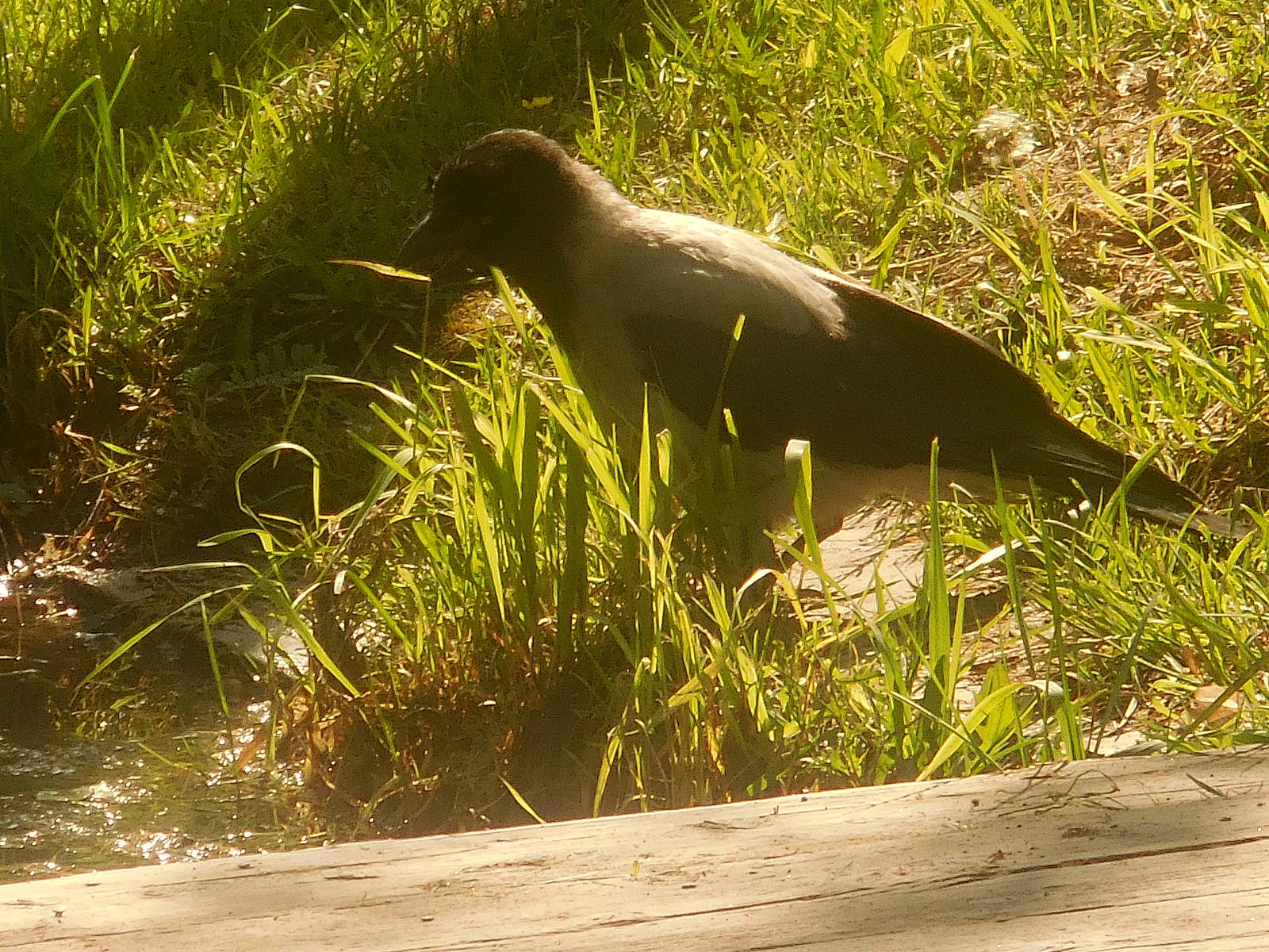 Снег клювом разгребла, кусочек хлеба там нашла.