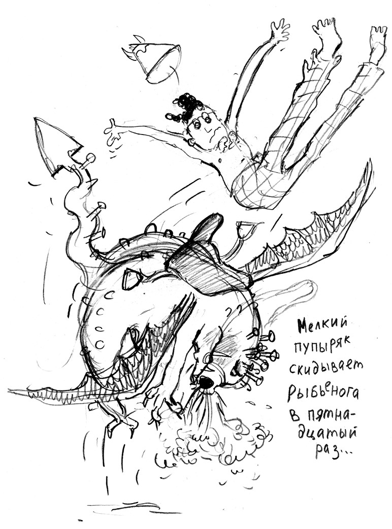 – НАЛЕВО, ИККИНГ, ПРИМИ ВЛЕВО-О-О! – взревел Плевака Крикливый, когда Кровожадный Карасик исчез вдали, верхом на удирающем Ветрогоне.