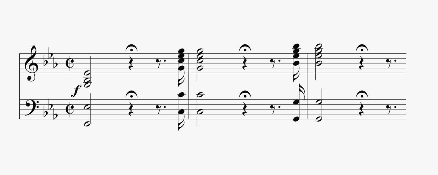 Пример 3 б – В.А. Моцарт, «Волшебная флейта», увертюра, «мотив трех ударов» как выражение стремления к таинственному