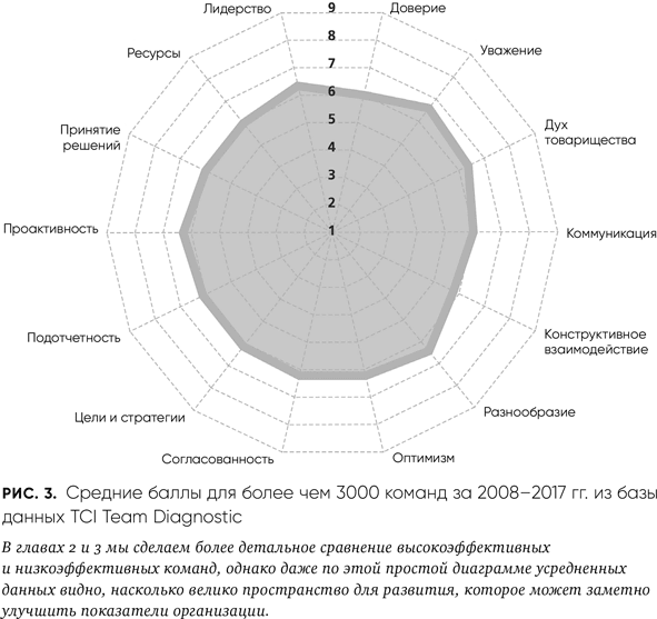 В начале этой главы мы задались вопросом: что именно делают высокоэффективные команды, чтобы работать лучше других? Мы рассмотрели качества, выделяющие их из числа остальных. Ответом на этот основополагающий вопрос служит превосходство команды по 14 факторам двух измерений – «Продуктивность» и «Позитивность».