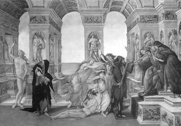 Сандро Боттичелли «Клевета (Оклеветание Апеллеса)», ок. 1494, дерево, темпера