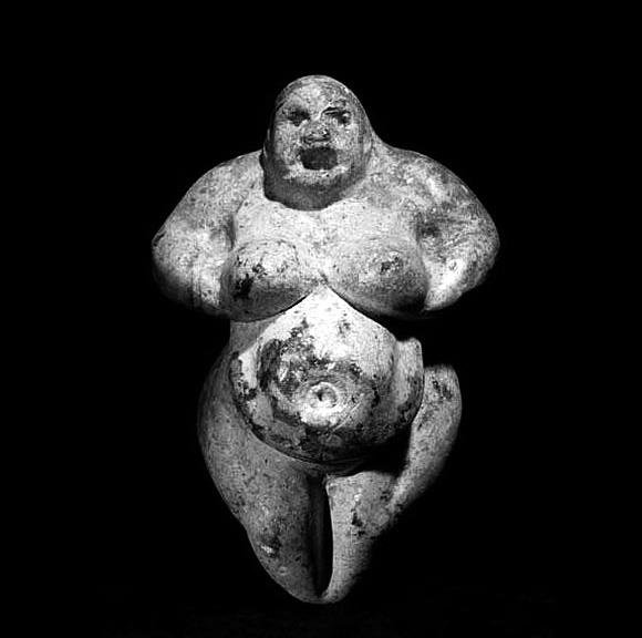 По всей видимости, женские фигурки каменного века изображали не столько постоянно беременную «мать рода», сколько «живую могилу», отучневшую от «погребальной еды». У «венеры» из Чаталхёюка живот без признаков беременности свисает жирной складкой. У Виллендорфской «венеры» на безглазом лице под шапкой волос, похожих на звериную шерсть, рот едва намечен, у одной из сибирских Мальтинских «венер» он широко открыт, а у терракотовой безволосой «венеры» из Анатолии хищно разинут, словно звериная пасть. Лоссельская «родовая мать», изображённая на куске известняка высотой около полуметра, в правой руке держит кубок из рога бизона, а левой, положенной на живот, словно показывает: смерть во мне превращается в жизнь. Разумеется, пьёт она не воду и не вино, которое появилось лишь в эпоху развитого земледелия.