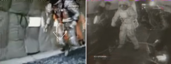 Такое же положение тела демонстрирует американец. Если бы не страховка помощников он бы упал. Потом испытатель побежал по дорожке с насыпным грунтом самостоятельно и… упал. Подобное падение было вполне ожидаемым. В таких условиях невозможно было проверить возникновения проблем передвижения человека в скафандре в вакууме. Избыточное давление в такой космической одежде не позволяет человеку сгибать ноги и руки при передвижении, если в местах сгиба отсутствуют шарнирные устройства и гофрированные поверхности. Неизбежное налипание мелкого грунта на подошвы и боковые стороны обуви в условиях вакуума тоже создают серьезные проблемы при ходьбе и прыжках. Они могут стать невозможными, если подошва обуви имеет значительные неровности и наросты. В другом учебном фильме НАСА продемонстрирован и оригинальный способ для создания имитации лунной гравитации на Земле.