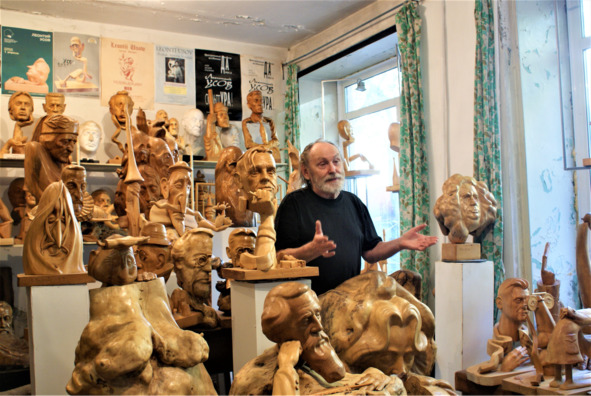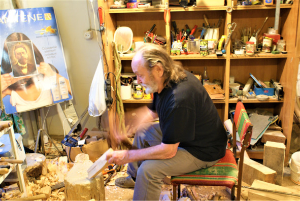 Скульптор Леонтий Усов в своей мастерской за работой. 2020 г.