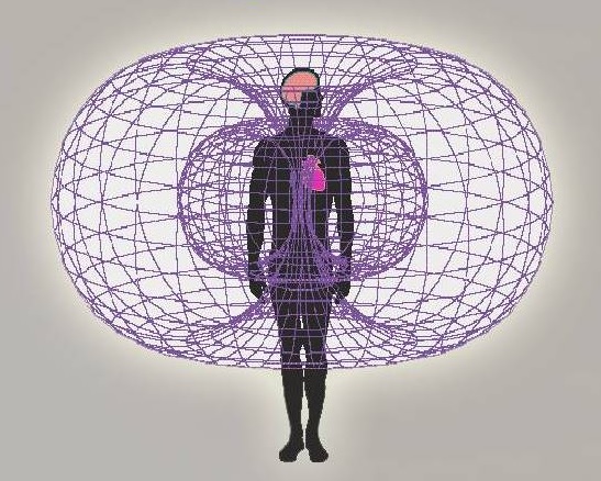 Рисунок 2: Иллюстрация физического био-электромагнитного поля, порождённого нашим сердцем (HeartMath). Там же имеются более свежие иллюстрации, которые показывают биополе сердца в отношении к телесному биополю.