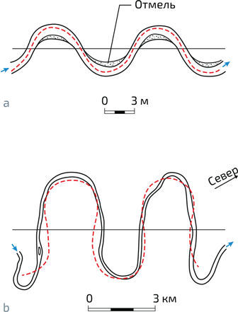 Для всех этих явлений, происходящих в однородных средах, случайные процессы способствуют образованию более или менее периодических излучин, однако причины их возникновения различны.