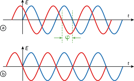7. a. Две волны с произвольным фазовым сдвигом φ.