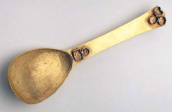 Рис. 11. Золотая ложка. Ковка, пайка. Дл. 20.5 см. Эпоха Аварского и Хазарского Каганатов. 7 в. Перещепинский комплекс, село Малая Перещепина, близ Полтавы. Российская империя.