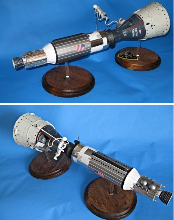 Исследование фотографий НАСА, других источников информации показывают, что американские фальсификаторы имели в своем распоряжении симуляторы «космических прогулок», макеты «космических» аппаратов США. Они в самых мелких деталях соответствовали оригиналам, которые были продемонстрированы американцами до их попадания в американский «космос» и после старта. Нет никакой гарантии, что в «космосе» США сфотографированы макеты малых размеров, а не реальные объекты. Не трудно догадаться, для чего американским сказочникам нужны были такие «игрушки». Они отлично подходят для того, чтобы продемонстрировать в американском «космосе» американскую «стыковку», а потом хвалиться своим мировым рекордом в указанной области.