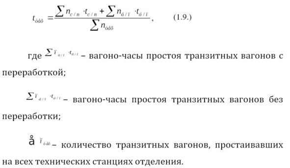 Средний простой вагона на технических станциях включает простой транзитных вагонов без переработки и с переработкой и рассчитывается по формуле: