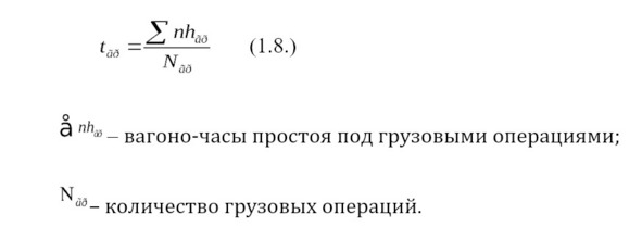 Средний простой вагона под одной грузовой операцией включает все время нахождения вагона на станции и состоит из времени, затрачиваемого собственно на грузовую операцию, и времени на технические операции (подача под погрузку, выгрузку и уборка вагонов от грузовых фронтов, расформирование, накопление, формирование).