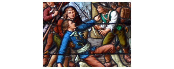Нашему герою удалось скрыться в саду Тюильри, откуда смешавшись с толпой, он вышел на улицу Сент-Онор. Пересекая Гревскую площадь, он видел толпу с головами швейцарцев насаженных на пики, дальше улица Карусель и дОтишамп запирается в комнате отеля дю Марэ, где он проживал в Париже.