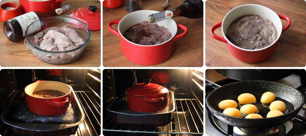 Перед подачей на стол извлечь печёнку из горшка и нарезать её тонкими ломтиками. Подавать с жареными на топлёном масле абрикосами и вином, которое использовали при приготовлении.