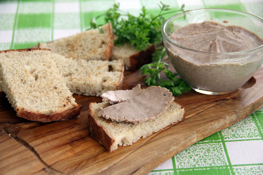 Протереть через мелкое сито варёную гусиную печёнку. Растопить сливочное масло, слегка взбить его и пока оно ещё тёплое смешать с пюре из гусиной печёнки. Влить портвейн, посолить, поперчить и тщательно перемешать.