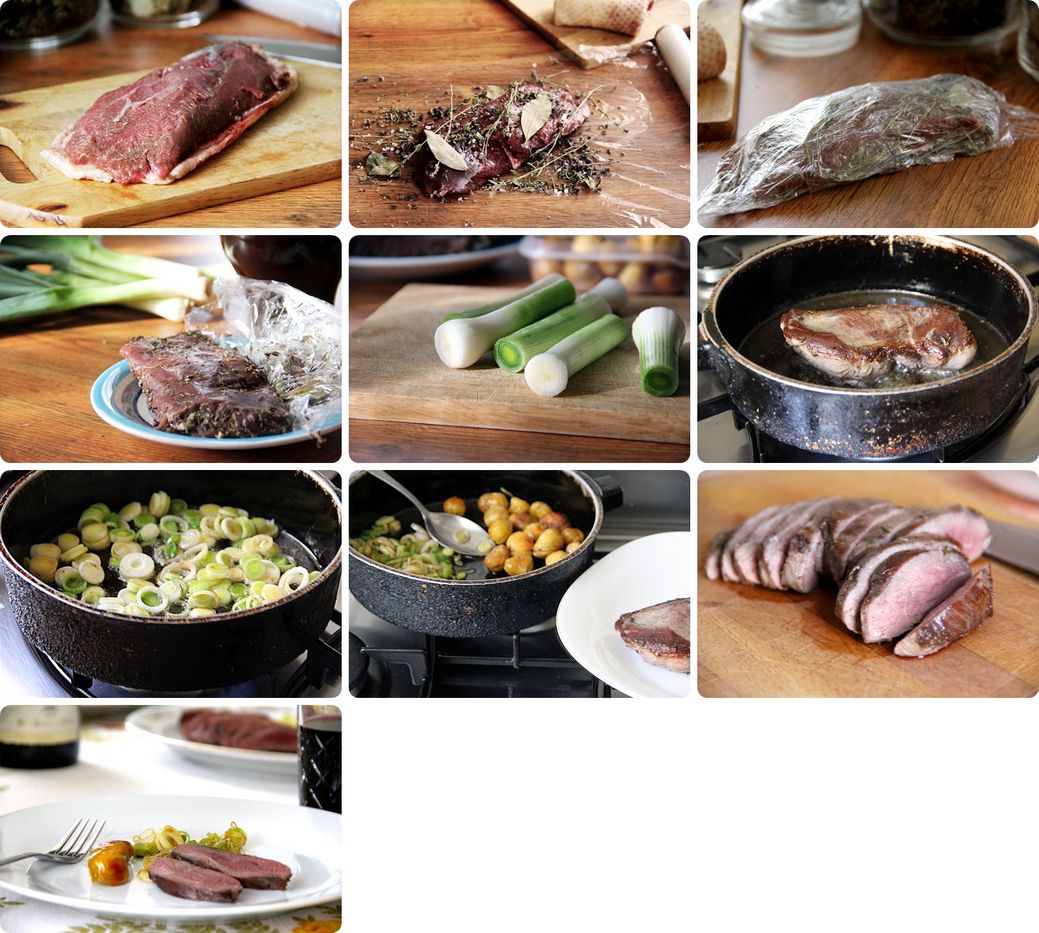 Филе молодого гуся с карамелизированными каштанами и луком-пореем