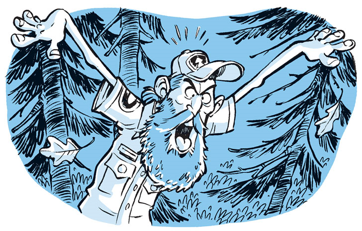 Лесник продолжал размахивать руками, стоя на огромном пне.