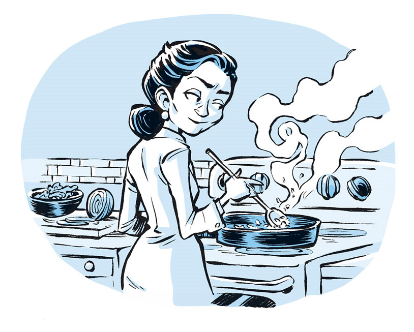 Когда я ворвался на кухню, мама жарила лук на плите. Она надела рабочий халат вместо фартука.