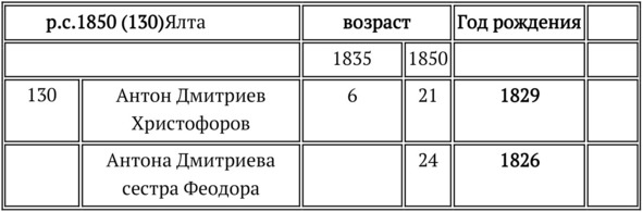 К этому времени наши предки перебрались из Крыма-Тавриды в Приазовье, где вместе со всеми основали новые поселения: город Мариуполь и селения вокруг него. Выходцы из Ялты основали вблизи Мариуполя, не мудрствуя лукаво, село с прежним названием: Ялта. Здесь и прошла очередная перепись.