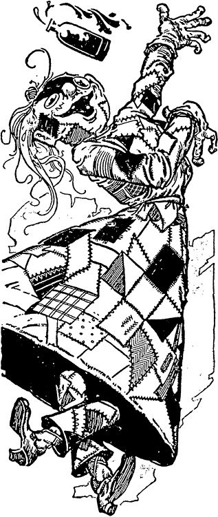 Охо-хо! Хлюп-хлюп-хлюп! Друже мій, не плач –Звуки видаєш смішні, мов радіоприймач!Як такий чаклун дорослий міг не зрозуміти:Просто й легко, ти повір, нещасних оживити.Чаклун видерся на лавку, бо був такий кривий, що інакше не зміг би дотягнутися до голови дружини, і почав трясти над нею баночку. Але з неї не висипалося ні крупинки. Чаклун зняв кришку, зазирнув усередину і з криком відчаю пожбурив її.
